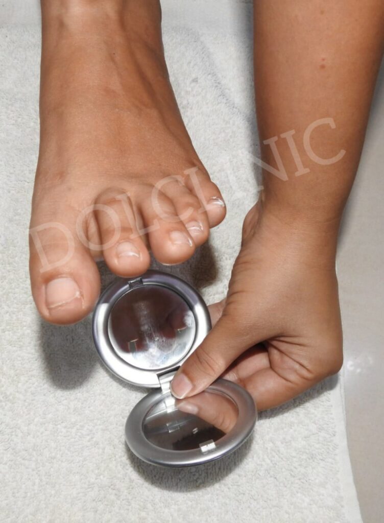 * दोन बोटांच्या मध्ये असलेल्या जागेत बघण्यास विसरू नका . कधी कधी जखम (इन्फेक्शन / infection) तिथे चालू होऊ शकते . उदाहरणार्थ: काही लोकांना या जागी चिखल्या होतात .ज्या पांढऱ्या थरा सारख्या दिसतात. येथून जखम (Infection) पायाच्या आत पसरू शकते .