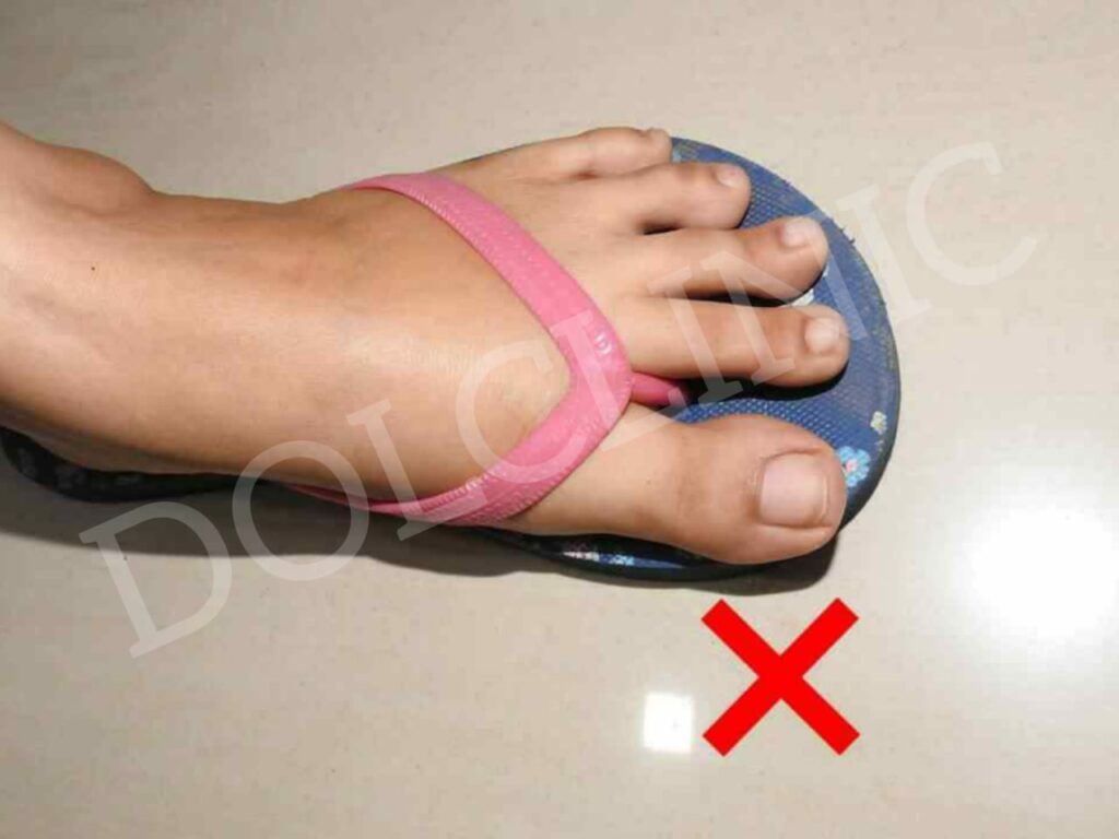 (3)बूट पुढच्या बाजूला रुंद असायला पाहिजे .म्हणजे सगळ्या बोटानां तिथे राहायला चांगली जागा मिळते . याच्या मुळे सगळी बोट व्यवस्थितपणे काम करतात . (घरात आणि बाहेर ) पाया मध्ये जाड मोजे घाला . हवाई चप्पल किंवा ज्यांना आपण स्लिपर्स (sleepers) म्हणतो किंवा कुठल्याही अंगठ्याच्या चपला उदाहरणार्थ कोल्हापुरी चप्पल सँडल्स टाळाव्यात .