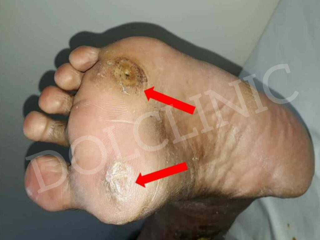 - हे चामडी चे एका ठिकाणी जाड झालेले भाग असतात . पायाच्या काही भागावर ,अंगठ्याच्या खाली किंवा टाचांच्या इथे जास्त दाब पडतो अश्या ठिकाणी चामडी सुरवातीला जाड होत जाते . कालांतराने ही चामडी एवढी जाड कडक आणि टणक होत जाते की ती आपल्या चामडी खालच्या मांसा मध्येच रुतत जाते . जखम (अल्सर ) आतमध्येच तयार होऊ लागते . म्हणूनच या गोष्टी जाणून घेणे महत्वाचे आहे . कारण जखमांची (अल्सर) ची सुरुवात या चामडी च्या जाड पासून घं घट्ट्या पासूनच होते .