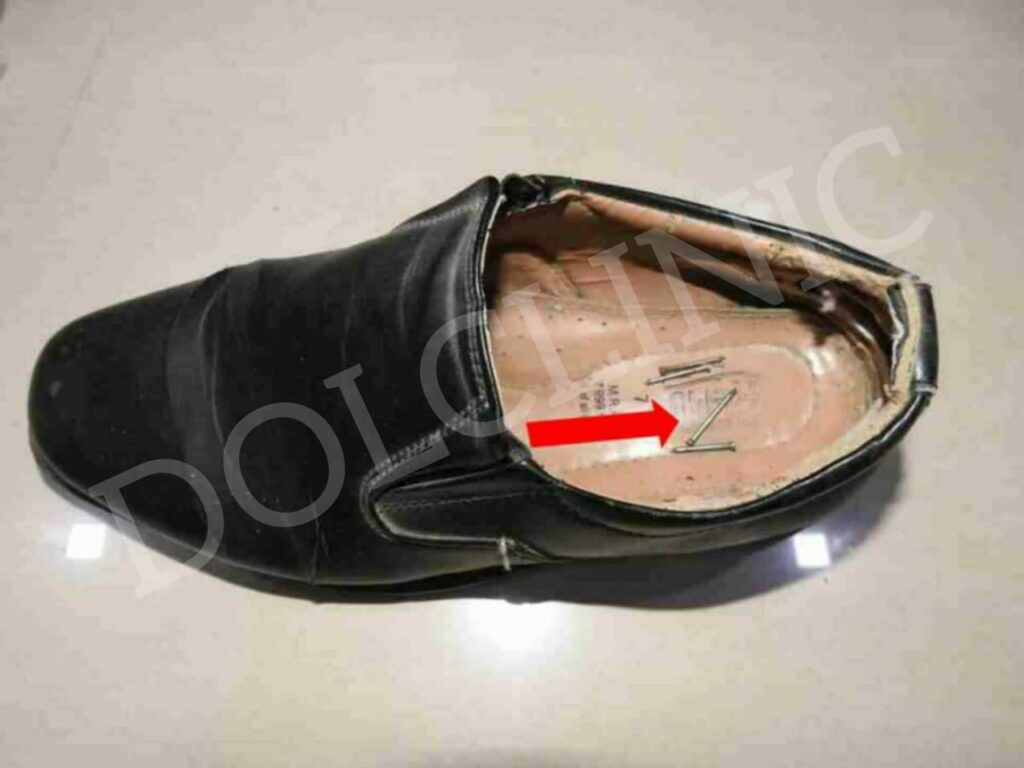 (2)पायाचा तळवा बुटाच्या आतल्या ज्या भागा वरती पडतो, ज्याला इंग्लिश मध्ये (इनसोल / insole ) म्हणतात, ते जाड असणं महत्वाचे आहे . जाड आणि मऊ इन्सोल मुळे पायाचा दाब व्यवस्थितपणे सगळी कडे पसरला जातो . आणि एका विशिष्ट ठिकाणी दाब जास्त न पडल्या मुळे पायाला होणाऱ्या जखमांची (ulcer) शक्यता कमी होते.